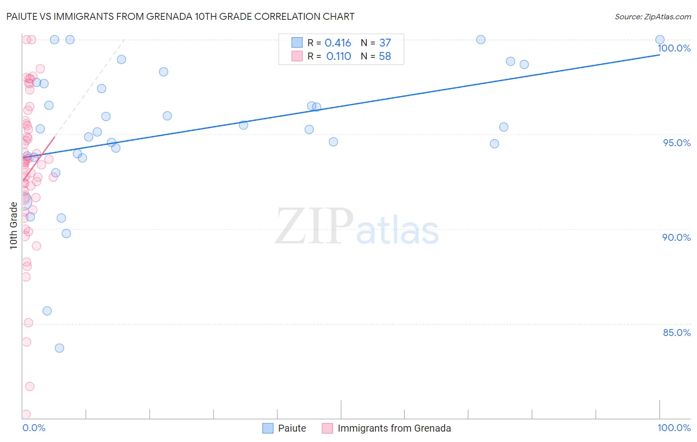 Paiute vs Immigrants from Grenada 10th Grade Correlation Chart