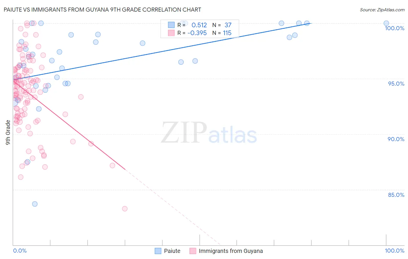 Paiute vs Immigrants from Guyana 9th Grade Correlation Chart