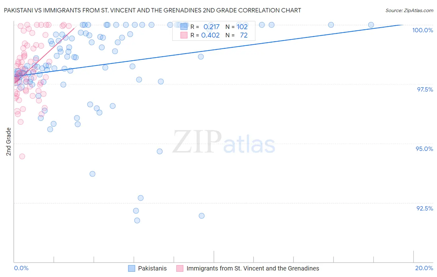 Pakistani vs Immigrants from St. Vincent and the Grenadines 2nd Grade Correlation Chart