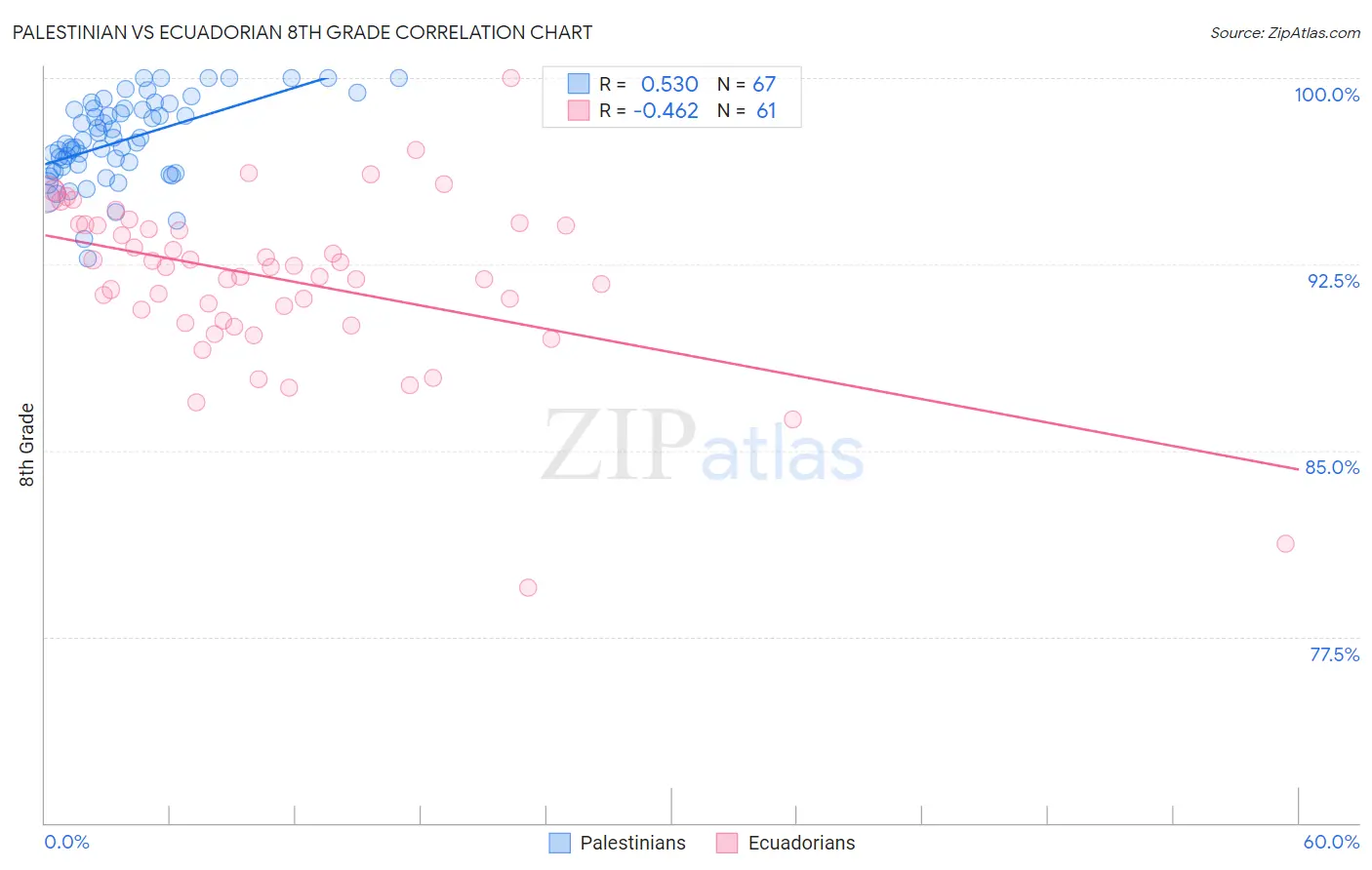 Palestinian vs Ecuadorian 8th Grade Correlation Chart