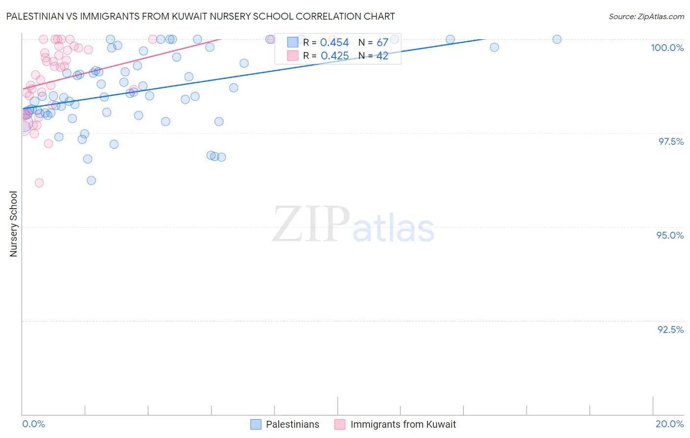 Palestinian vs Immigrants from Kuwait Nursery School Correlation Chart