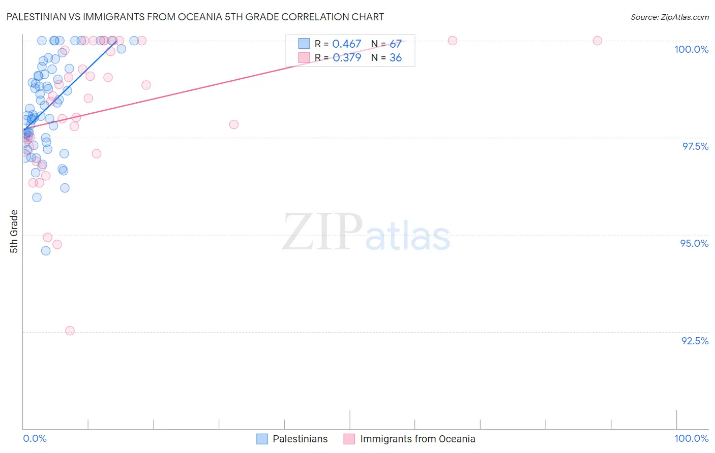 Palestinian vs Immigrants from Oceania 5th Grade Correlation Chart