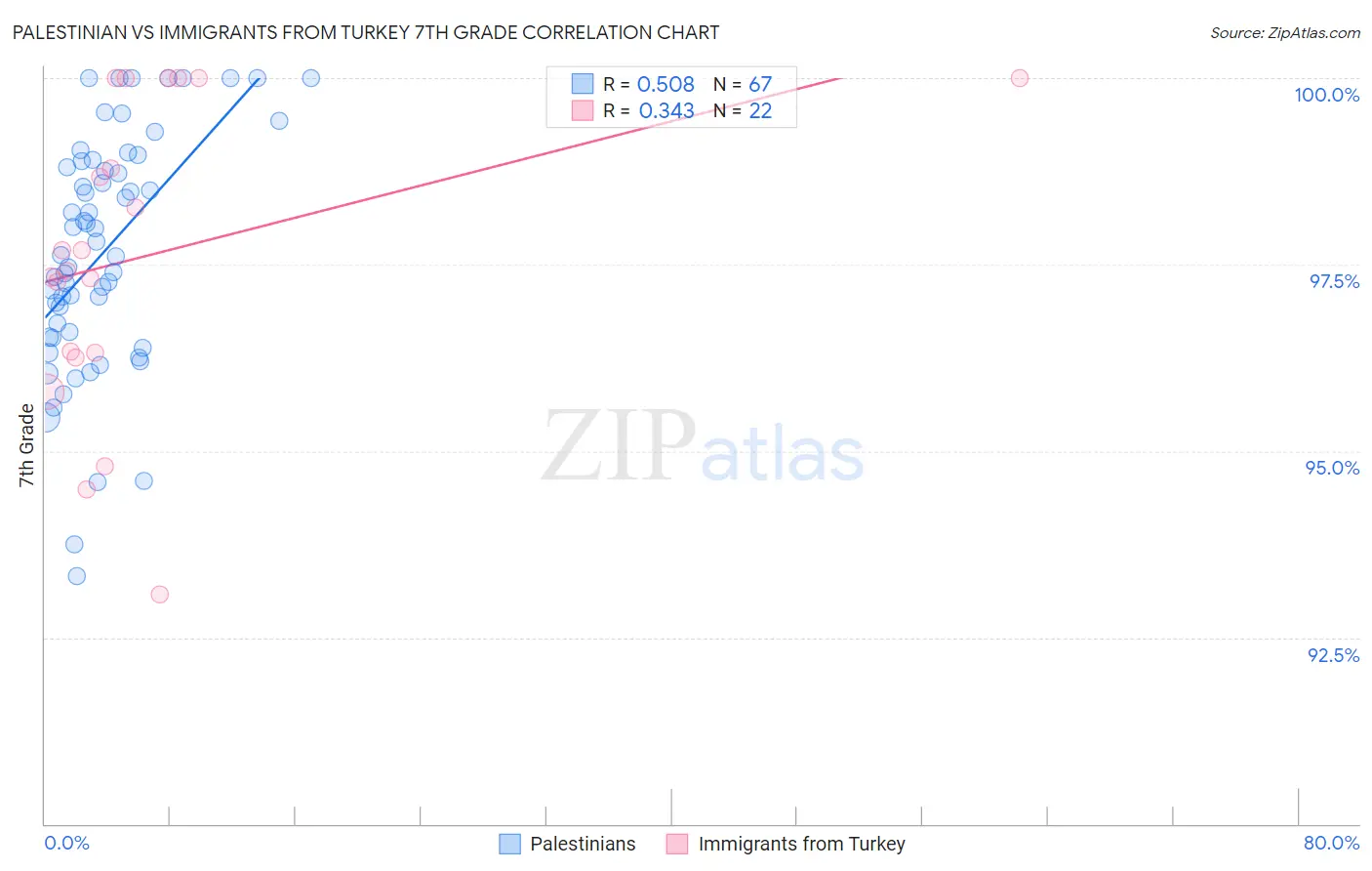 Palestinian vs Immigrants from Turkey 7th Grade Correlation Chart