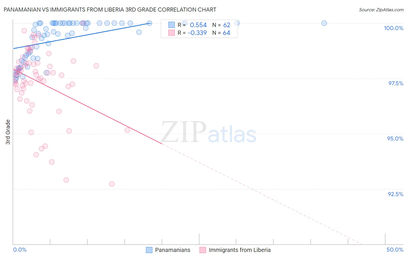 Panamanian vs Immigrants from Liberia 3rd Grade Correlation Chart