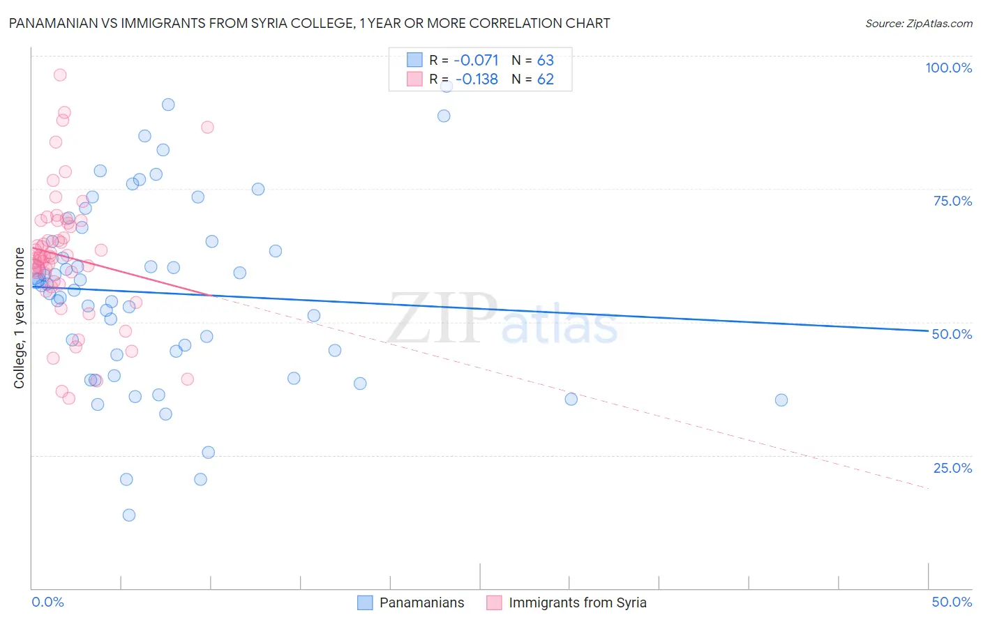 Panamanian vs Immigrants from Syria College, 1 year or more