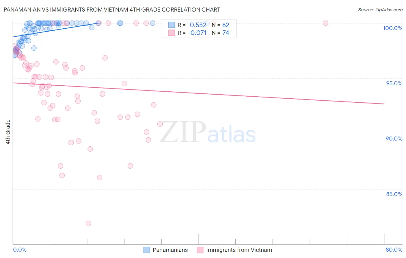Panamanian vs Immigrants from Vietnam 4th Grade Correlation Chart