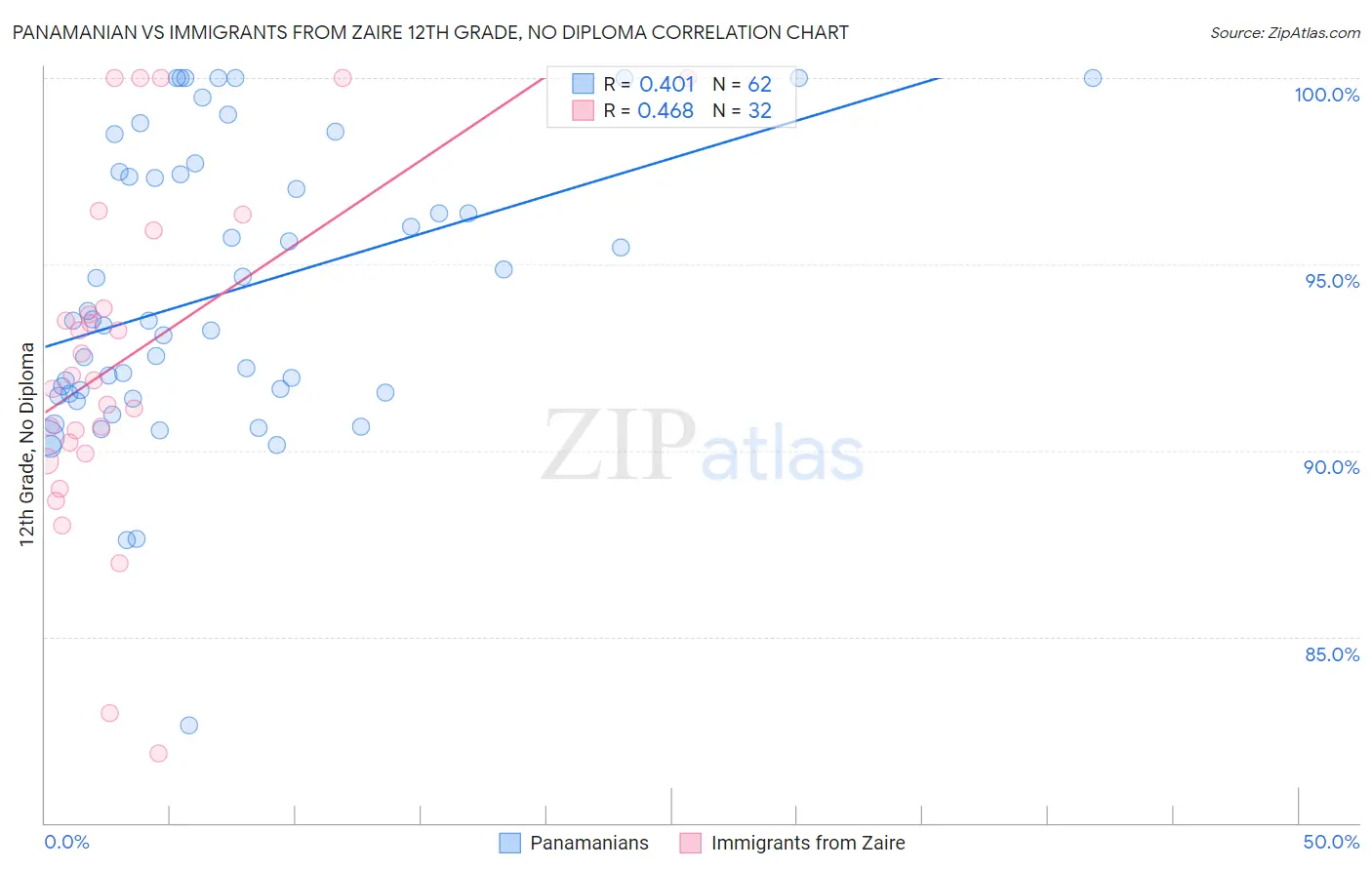 Panamanian vs Immigrants from Zaire 12th Grade, No Diploma Correlation Chart