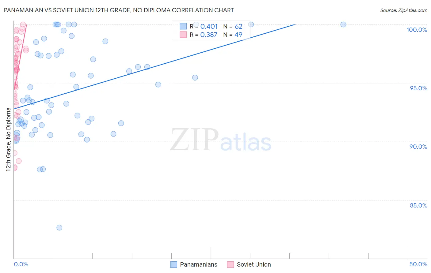 Panamanian vs Soviet Union 12th Grade, No Diploma Correlation Chart