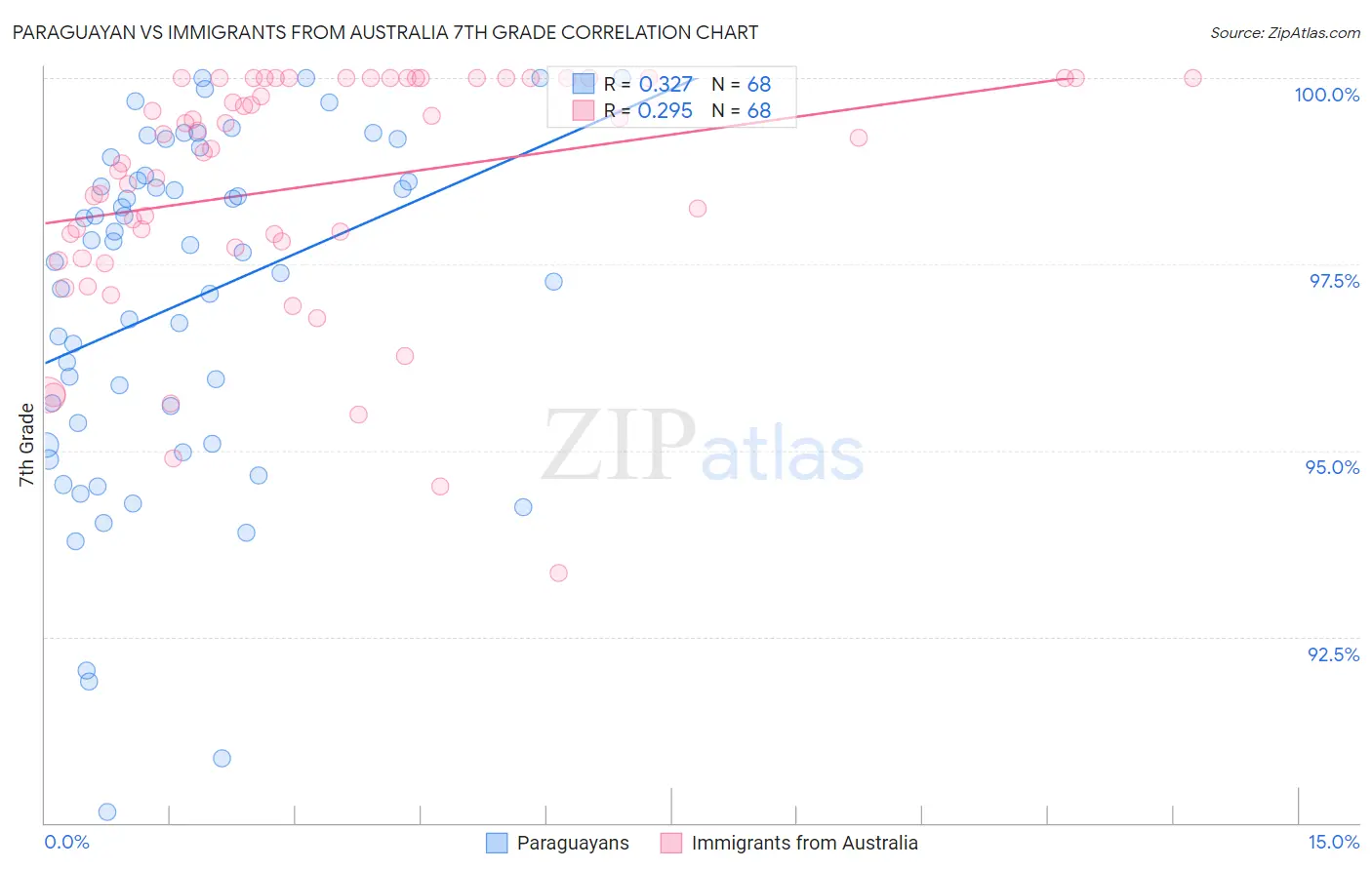 Paraguayan vs Immigrants from Australia 7th Grade Correlation Chart
