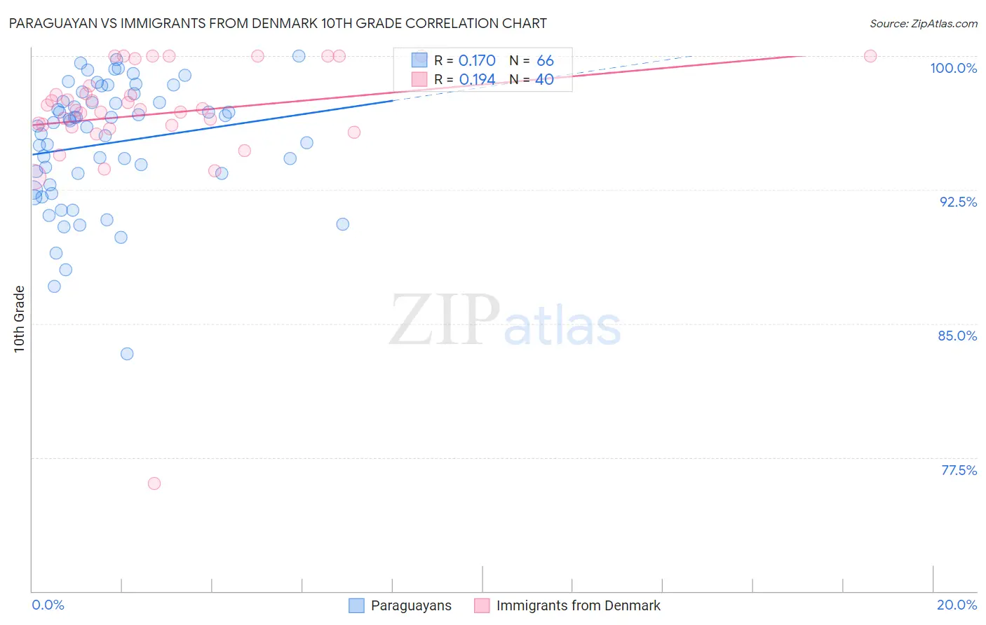 Paraguayan vs Immigrants from Denmark 10th Grade Correlation Chart
