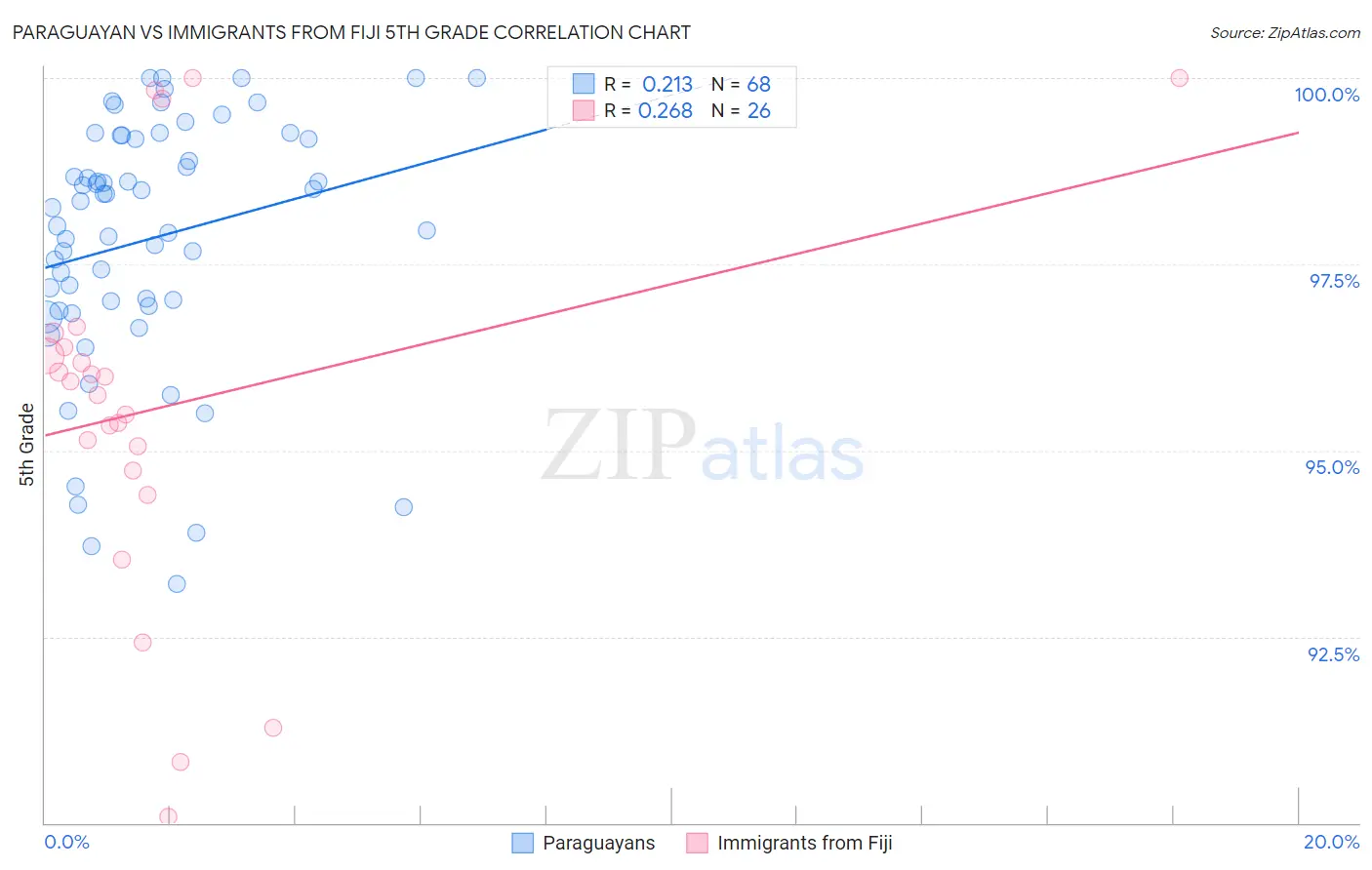 Paraguayan vs Immigrants from Fiji 5th Grade Correlation Chart