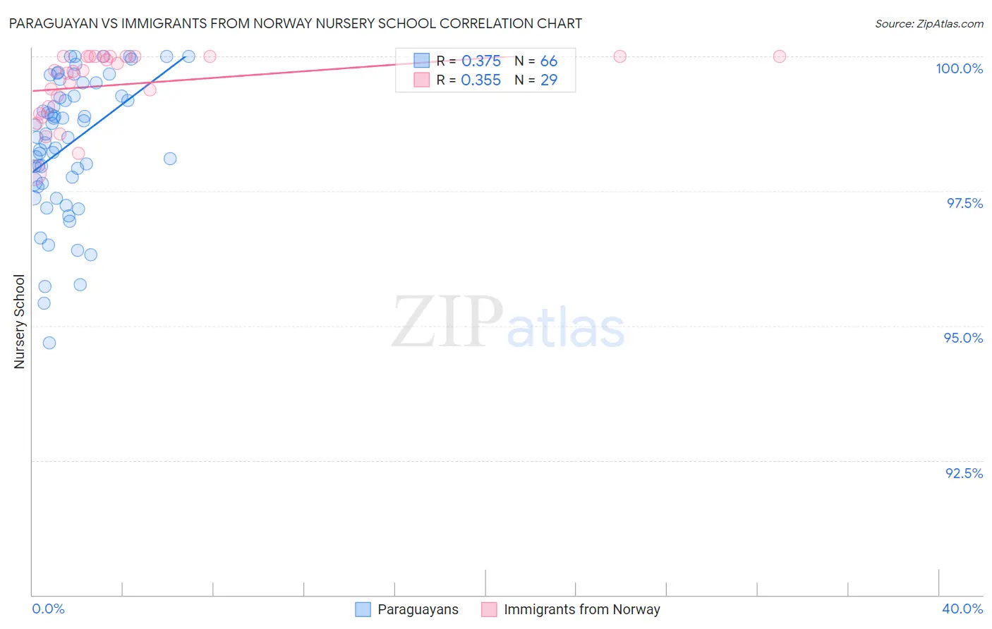 Paraguayan vs Immigrants from Norway Nursery School Correlation Chart