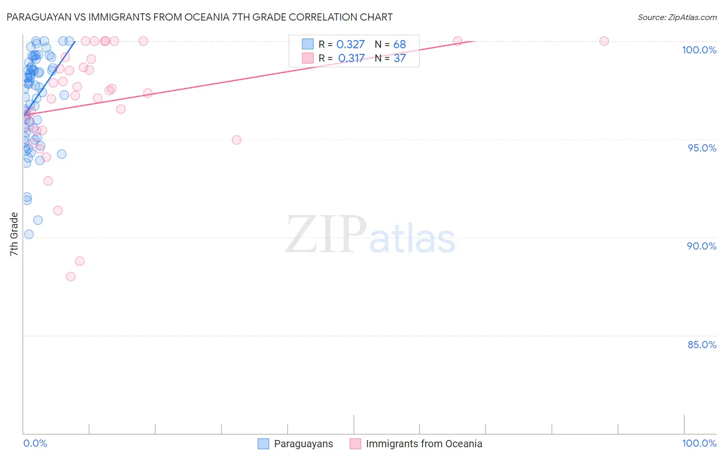 Paraguayan vs Immigrants from Oceania 7th Grade Correlation Chart