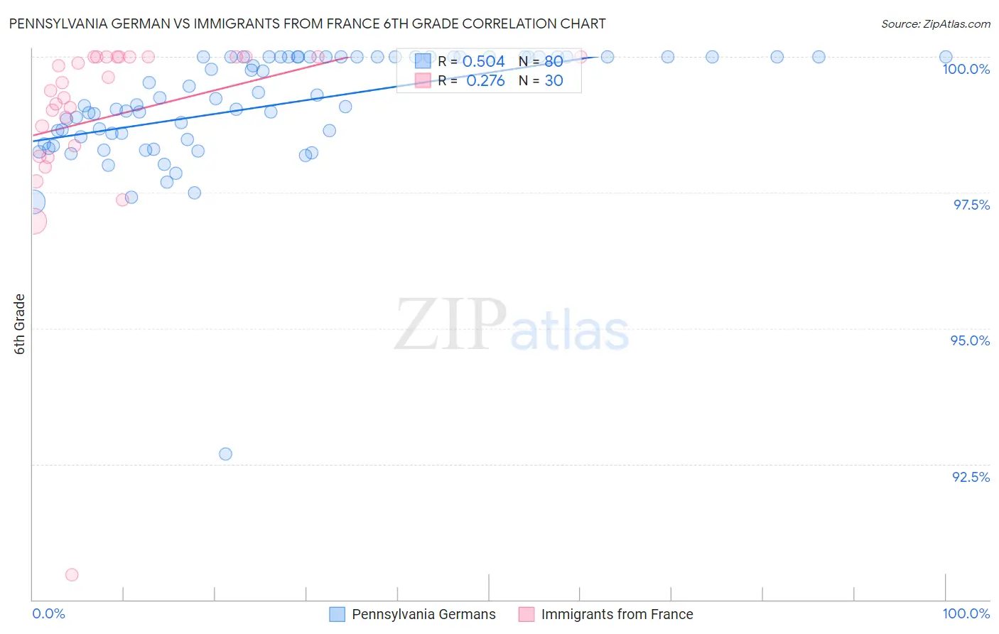 Pennsylvania German vs Immigrants from France 6th Grade Correlation Chart