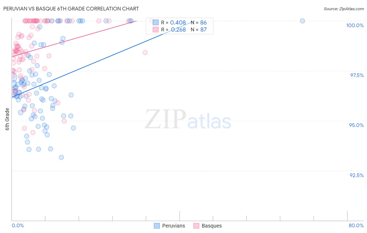 Peruvian vs Basque 6th Grade Correlation Chart