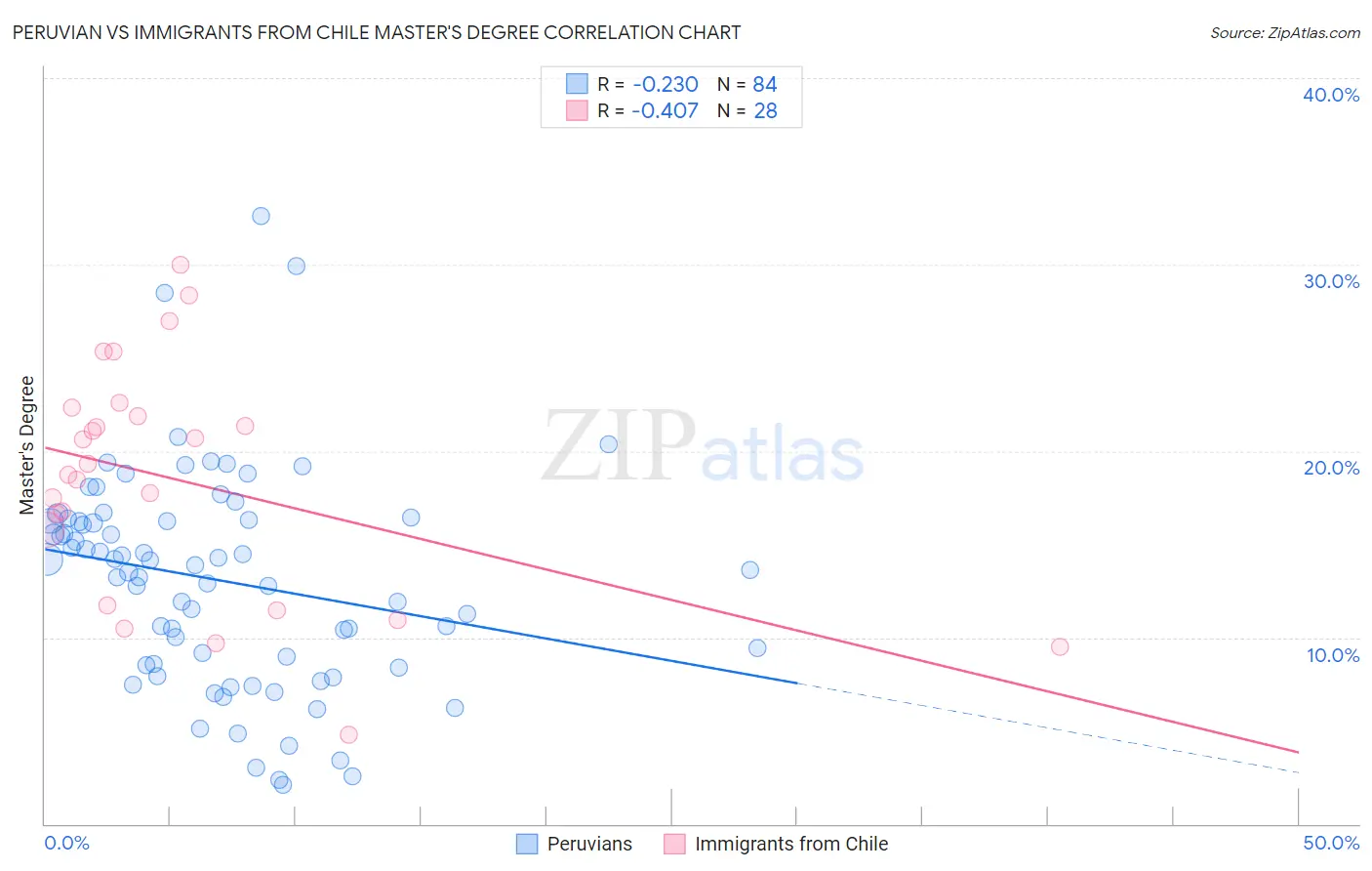 Peruvian vs Immigrants from Chile Master's Degree Correlation Chart