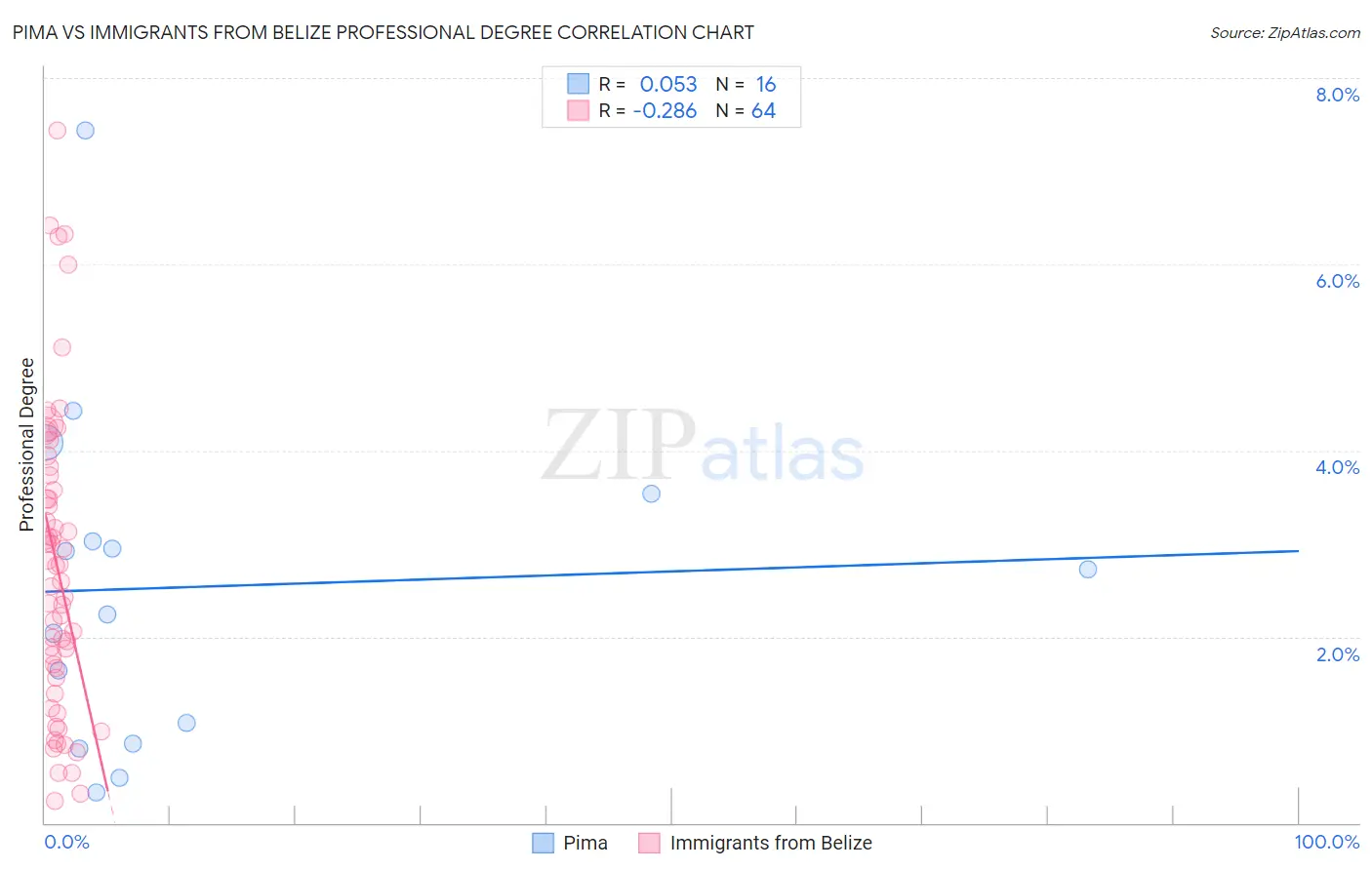 Pima vs Immigrants from Belize Professional Degree Correlation Chart