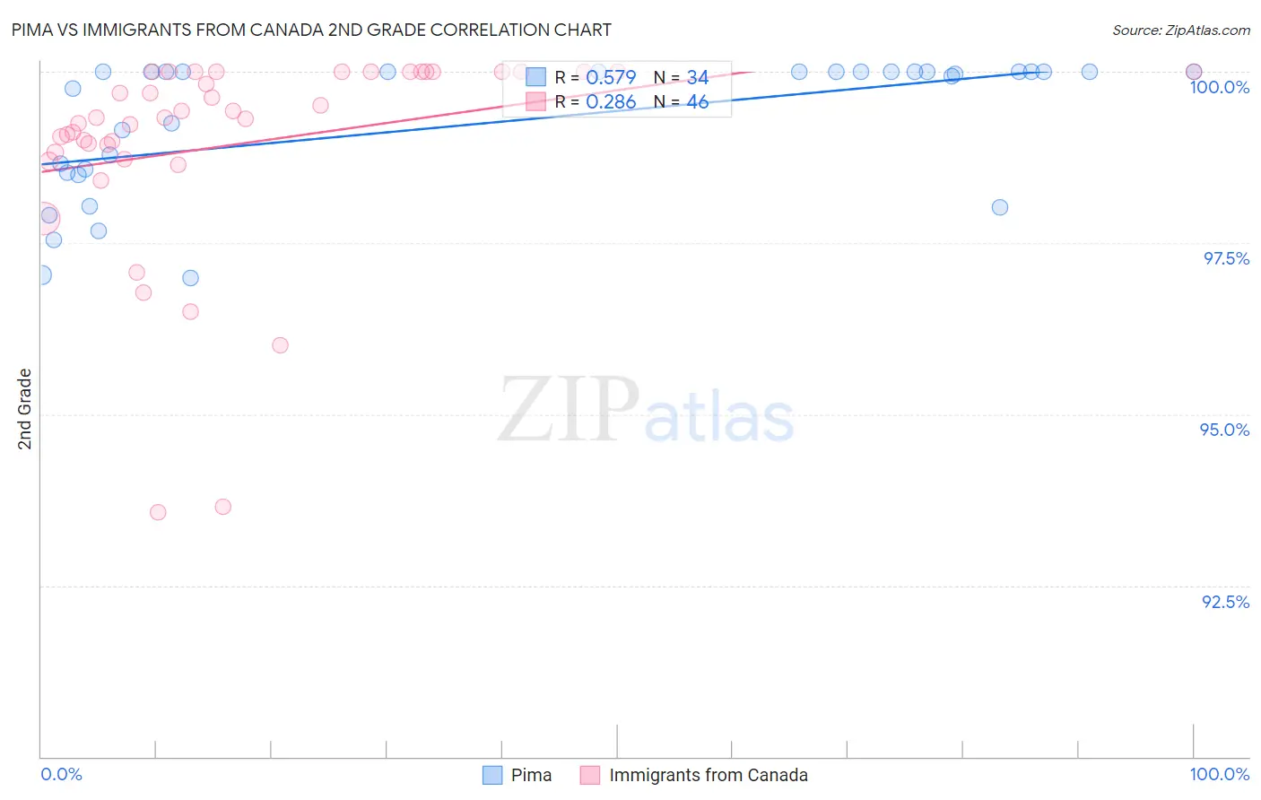Pima vs Immigrants from Canada 2nd Grade Correlation Chart