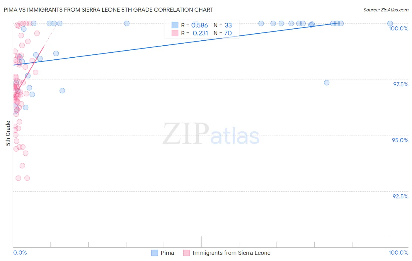 Pima vs Immigrants from Sierra Leone 5th Grade Correlation Chart