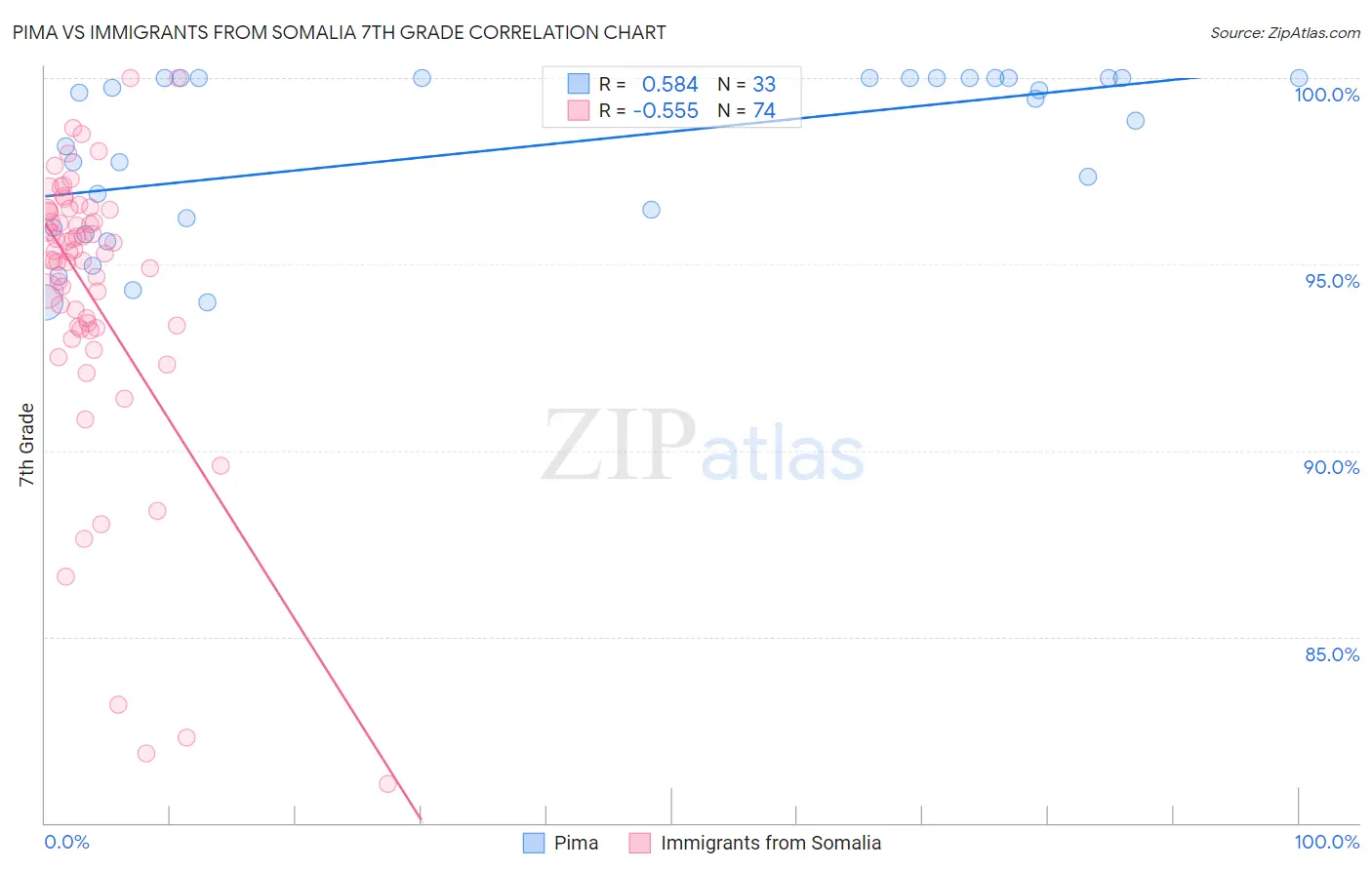 Pima vs Immigrants from Somalia 7th Grade Correlation Chart
