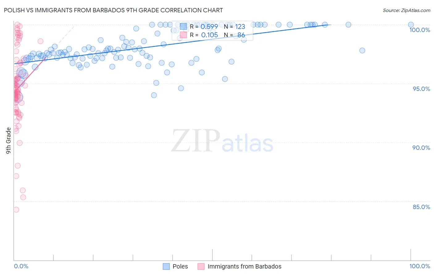 Polish vs Immigrants from Barbados 9th Grade Correlation Chart