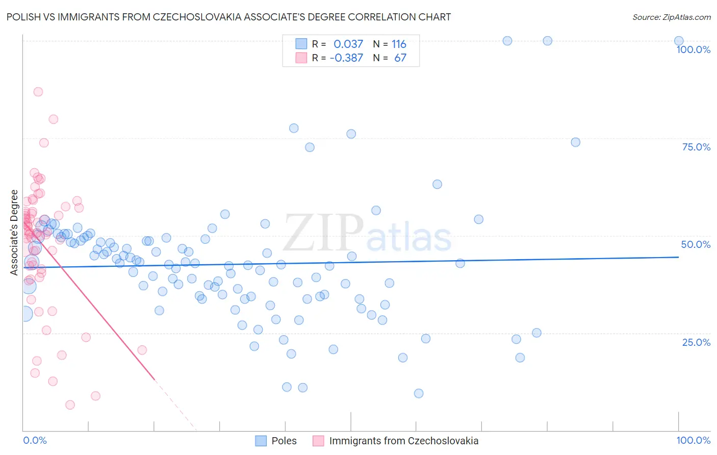 Polish vs Immigrants from Czechoslovakia Associate's Degree Correlation Chart