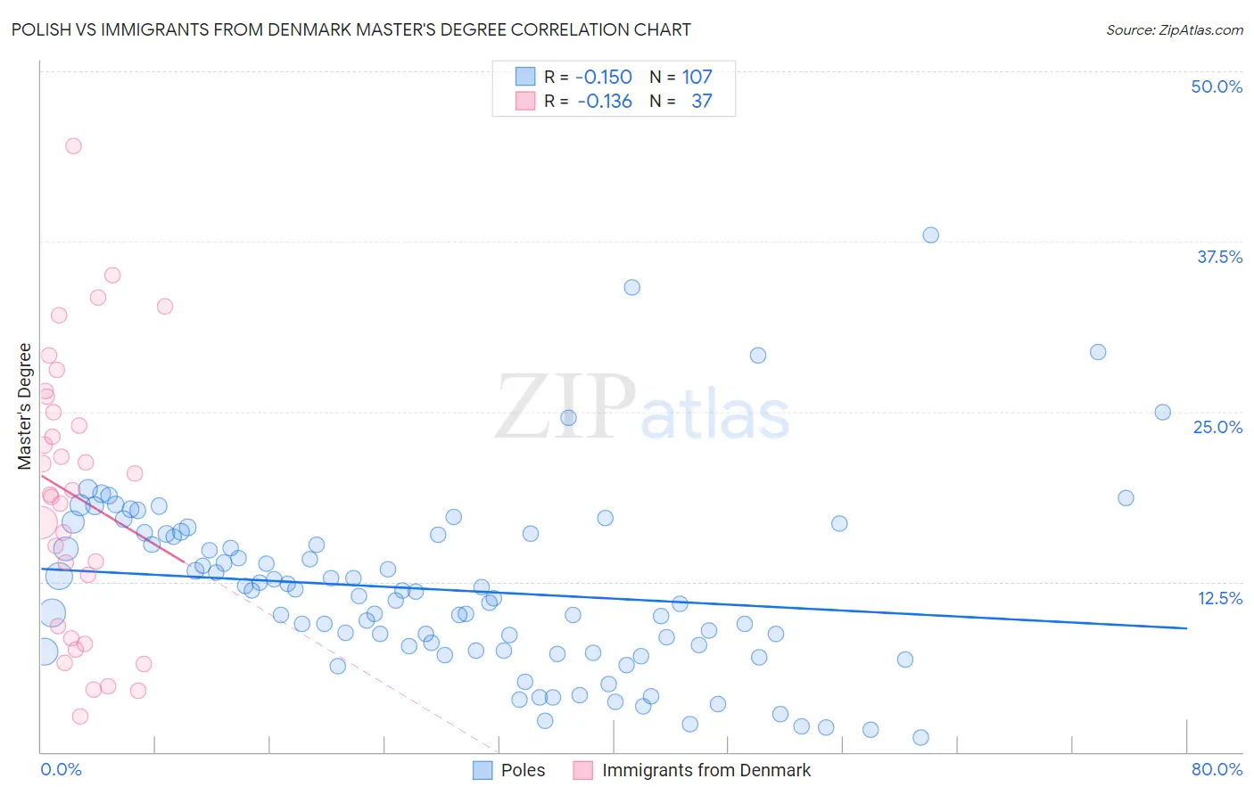 Polish vs Immigrants from Denmark Master's Degree Correlation Chart