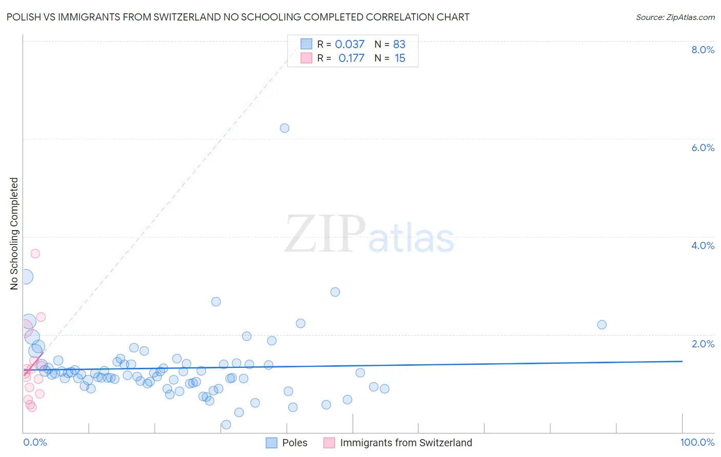 Polish vs Immigrants from Switzerland No Schooling Completed Correlation Chart