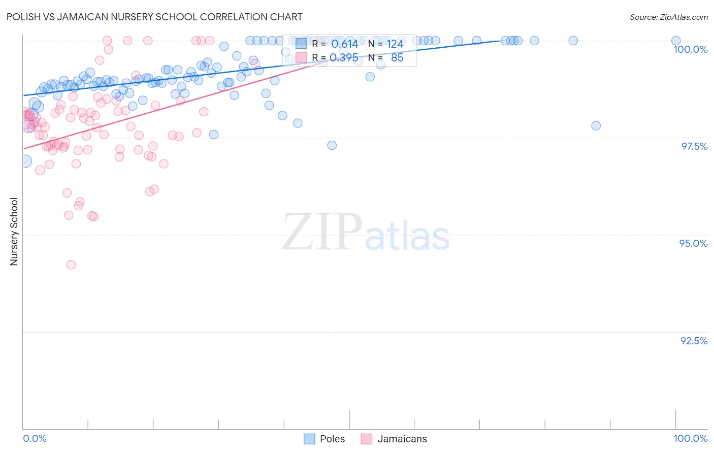 Polish vs Jamaican Nursery School Correlation Chart