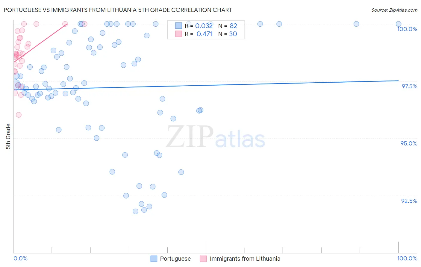 Portuguese vs Immigrants from Lithuania 5th Grade Correlation Chart