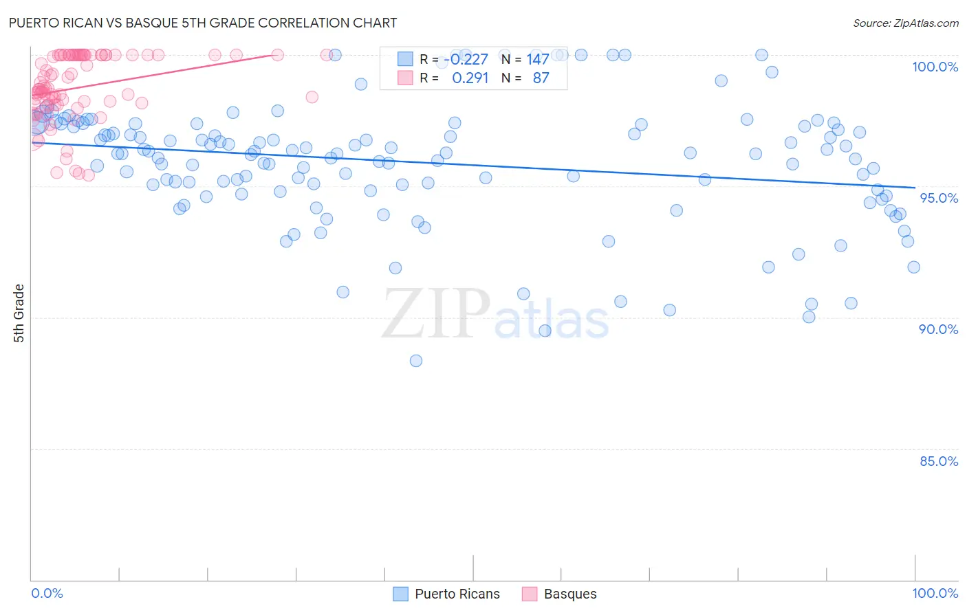 Puerto Rican vs Basque 5th Grade Correlation Chart