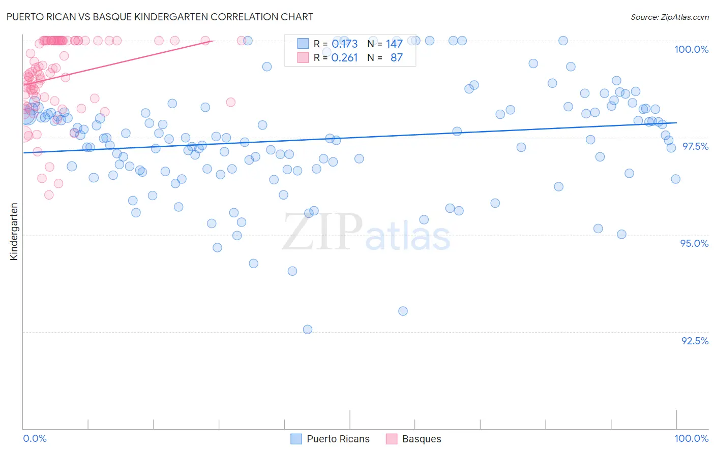 Puerto Rican vs Basque Kindergarten Correlation Chart