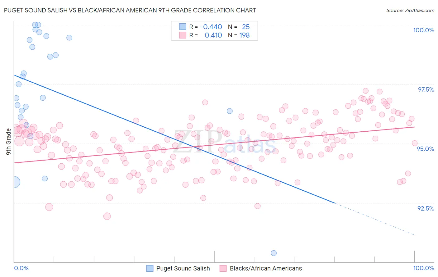 Puget Sound Salish vs Black/African American 9th Grade Correlation Chart