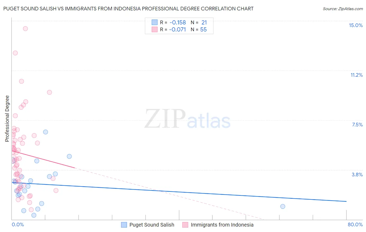 Puget Sound Salish vs Immigrants from Indonesia Professional Degree Correlation Chart