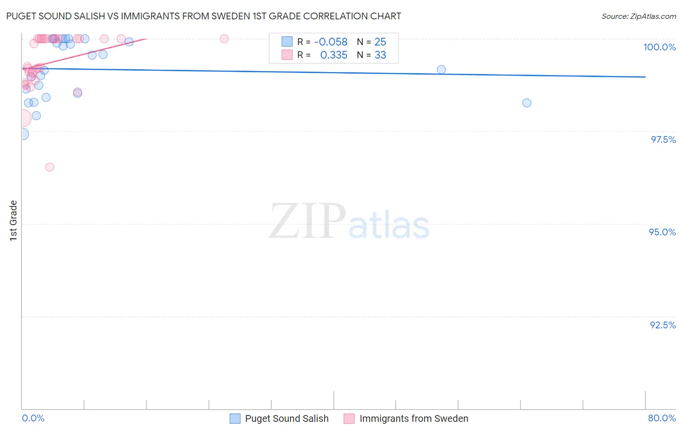 Puget Sound Salish vs Immigrants from Sweden 1st Grade Correlation Chart