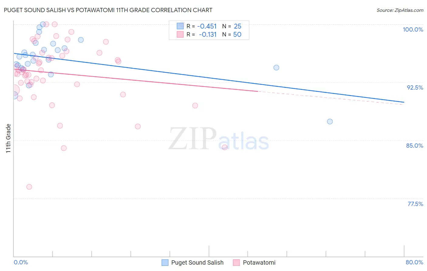 Puget Sound Salish vs Potawatomi 11th Grade Correlation Chart