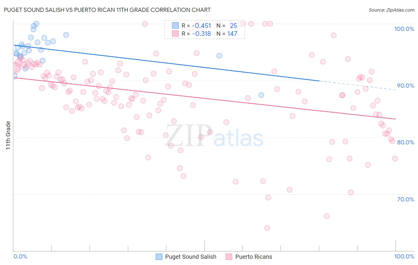 Puget Sound Salish vs Puerto Rican 11th Grade Correlation Chart