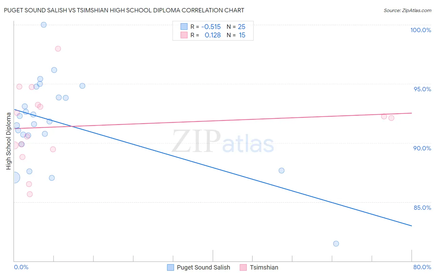 Puget Sound Salish vs Tsimshian High School Diploma Correlation Chart
