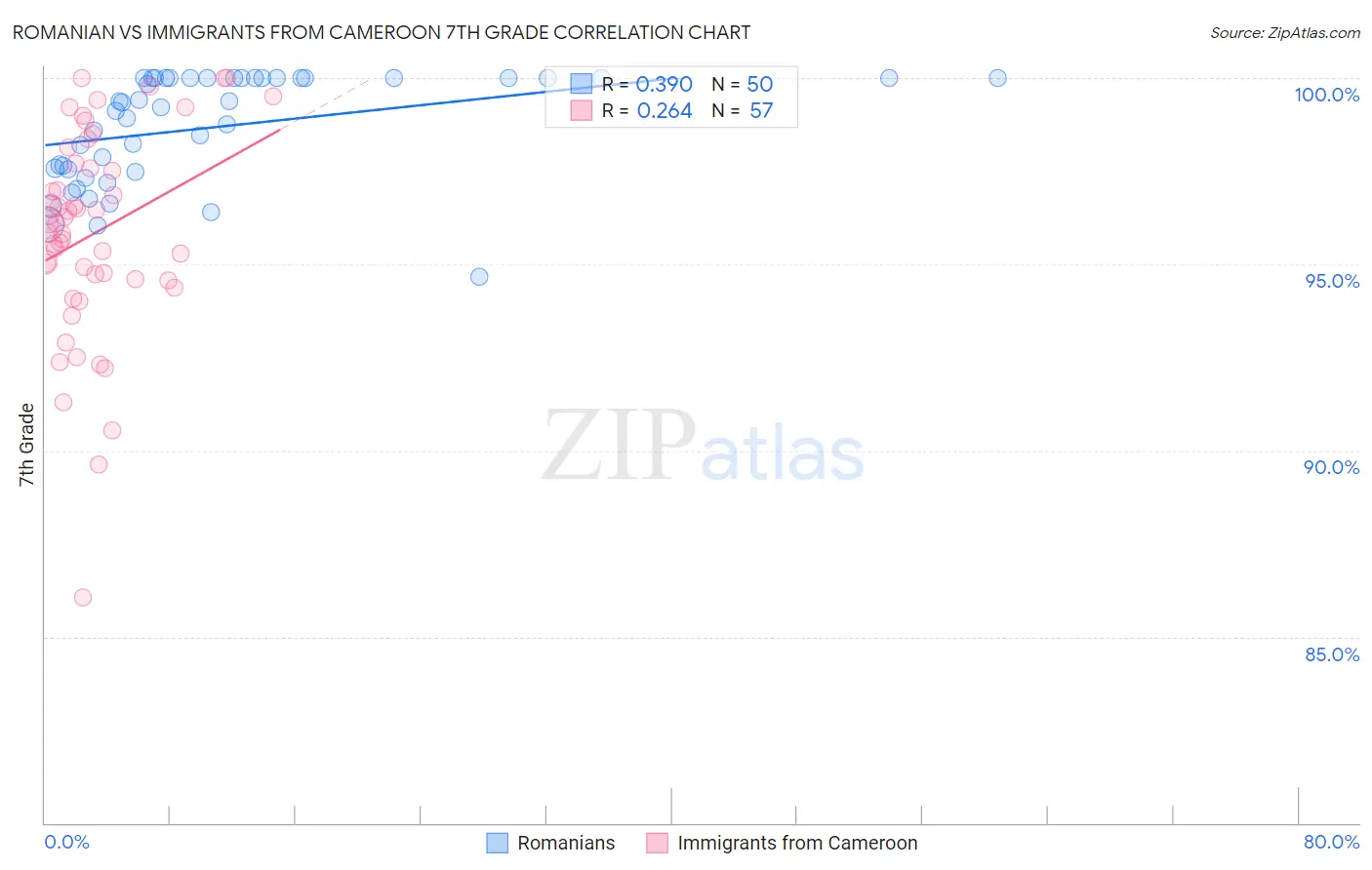 Romanian vs Immigrants from Cameroon 7th Grade Correlation Chart