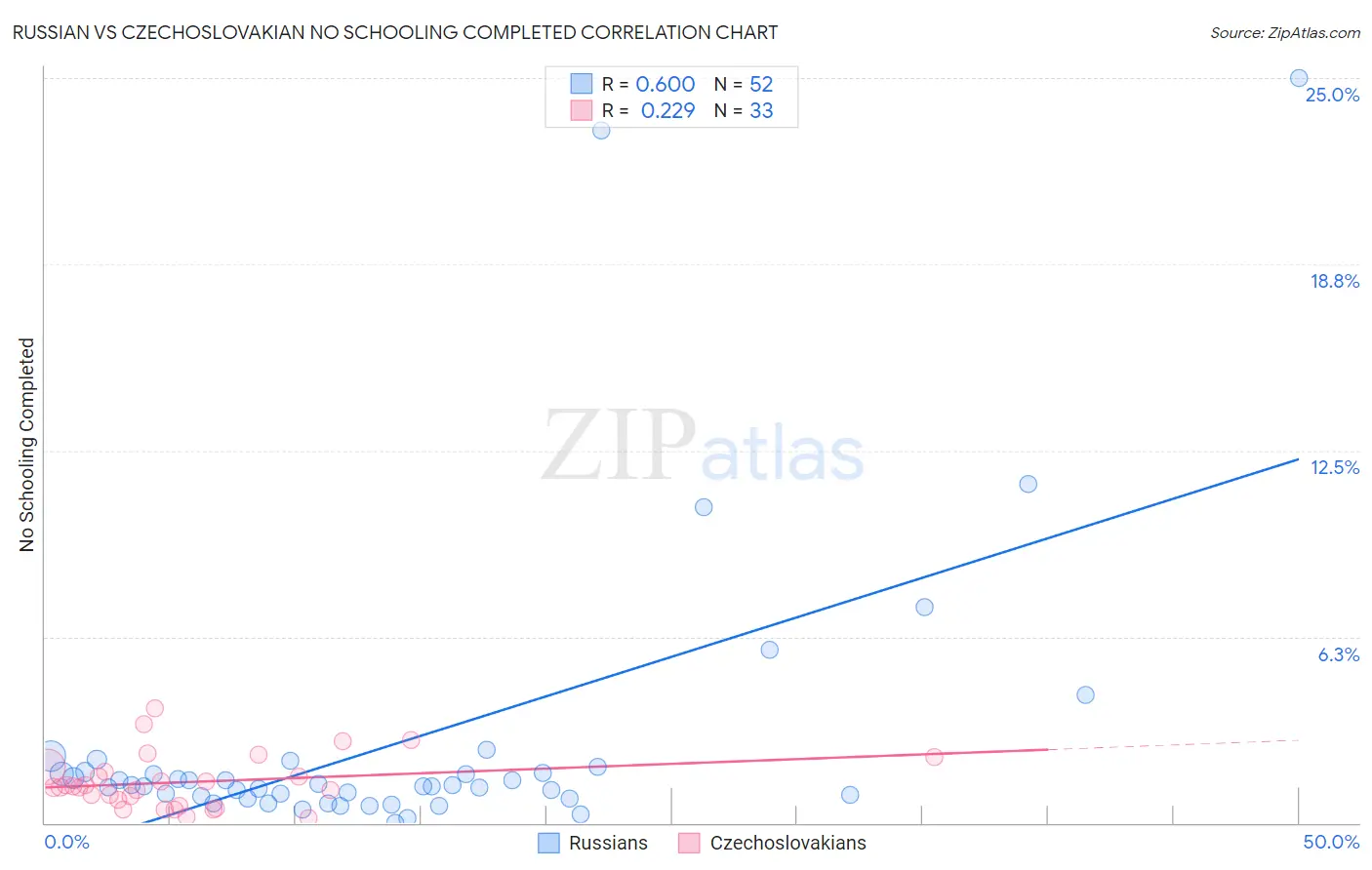 Russian vs Czechoslovakian No Schooling Completed Correlation Chart