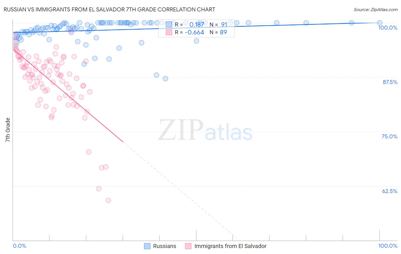 Russian vs Immigrants from El Salvador 7th Grade Correlation Chart