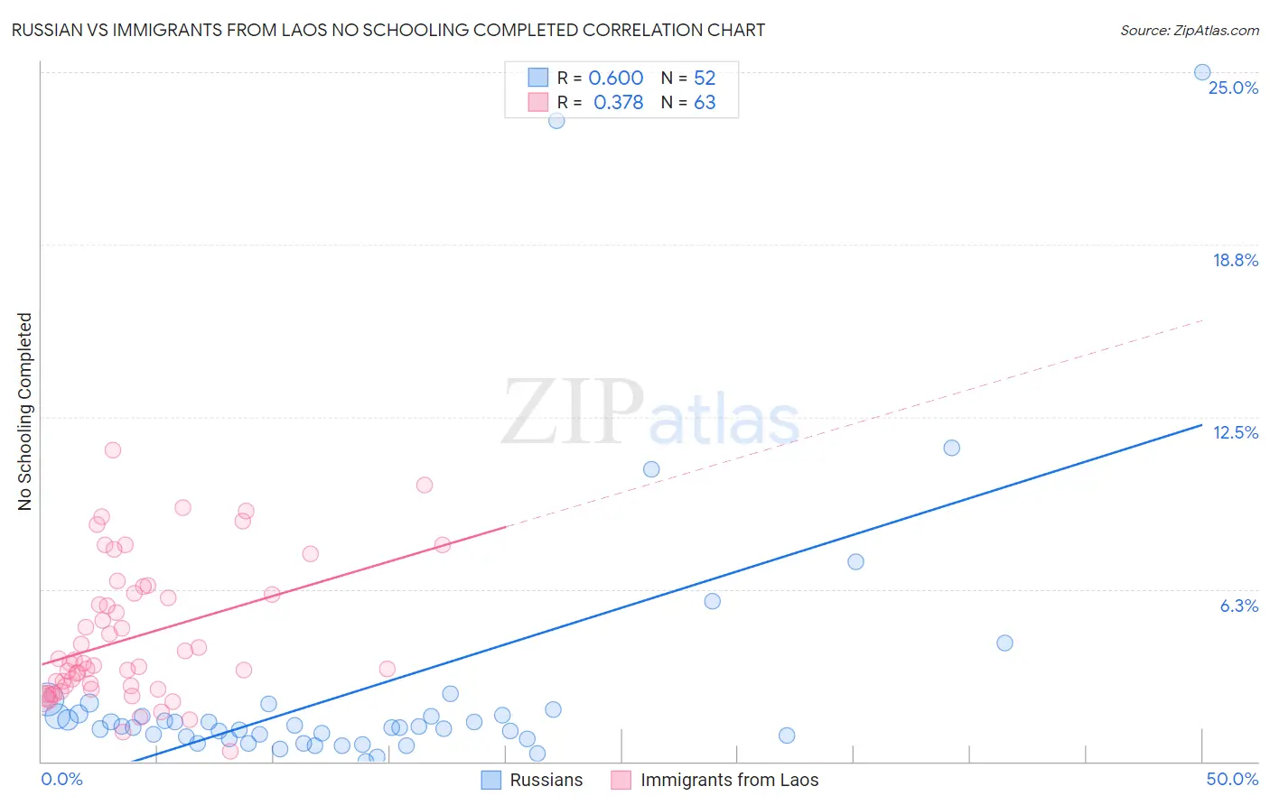 Russian vs Immigrants from Laos No Schooling Completed Correlation Chart