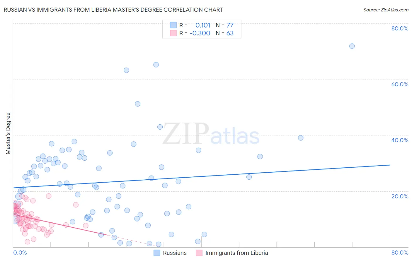 Russian vs Immigrants from Liberia Master's Degree Correlation Chart