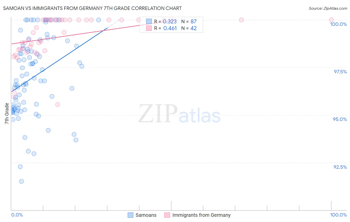 Samoan vs Immigrants from Germany 7th Grade Correlation Chart