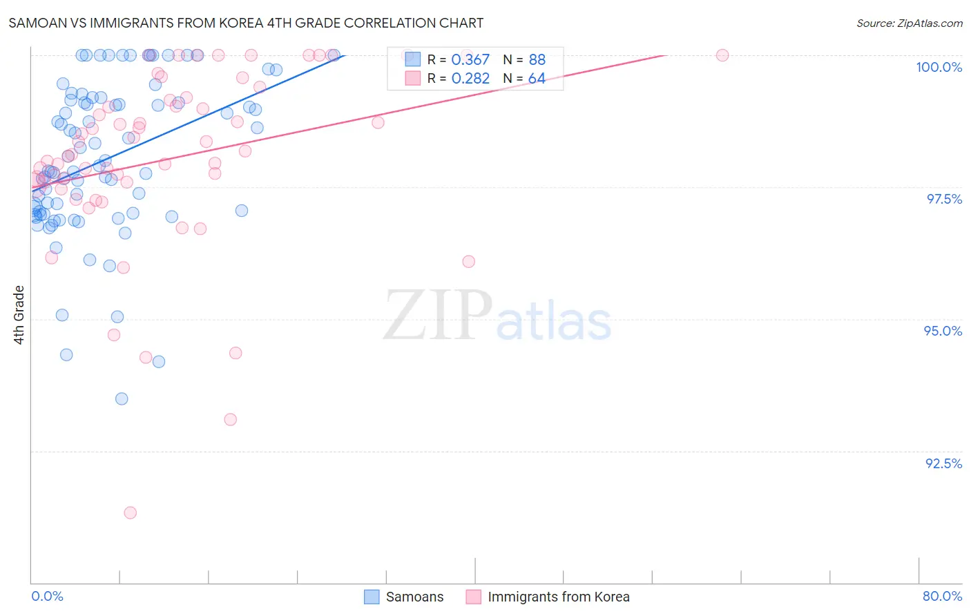 Samoan vs Immigrants from Korea 4th Grade Correlation Chart