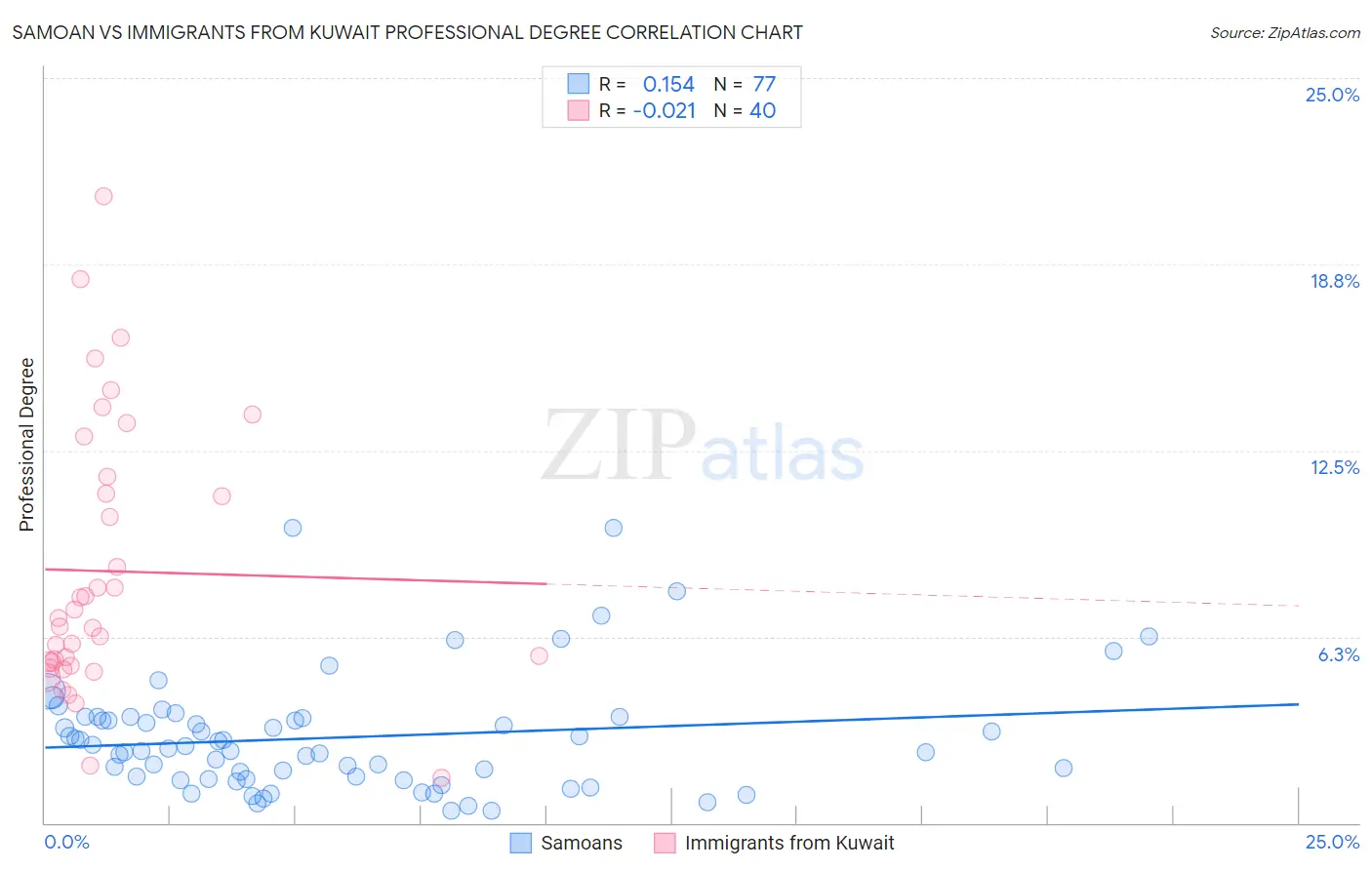 Samoan vs Immigrants from Kuwait Professional Degree Correlation Chart