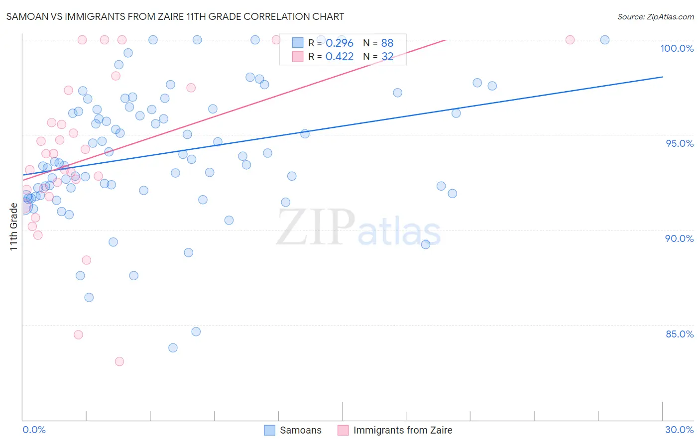 Samoan vs Immigrants from Zaire 11th Grade Correlation Chart