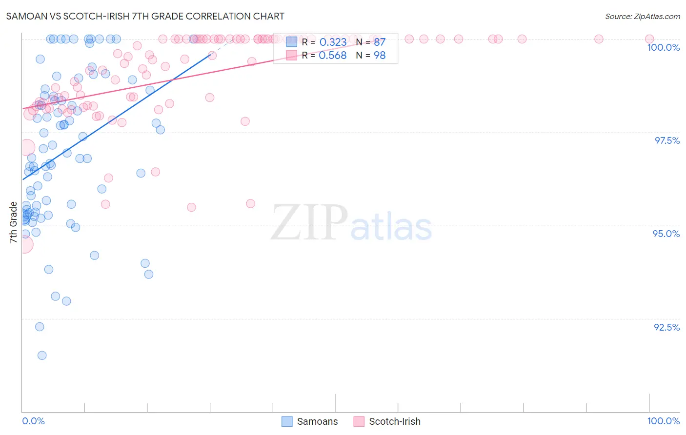 Samoan vs Scotch-Irish 7th Grade Correlation Chart