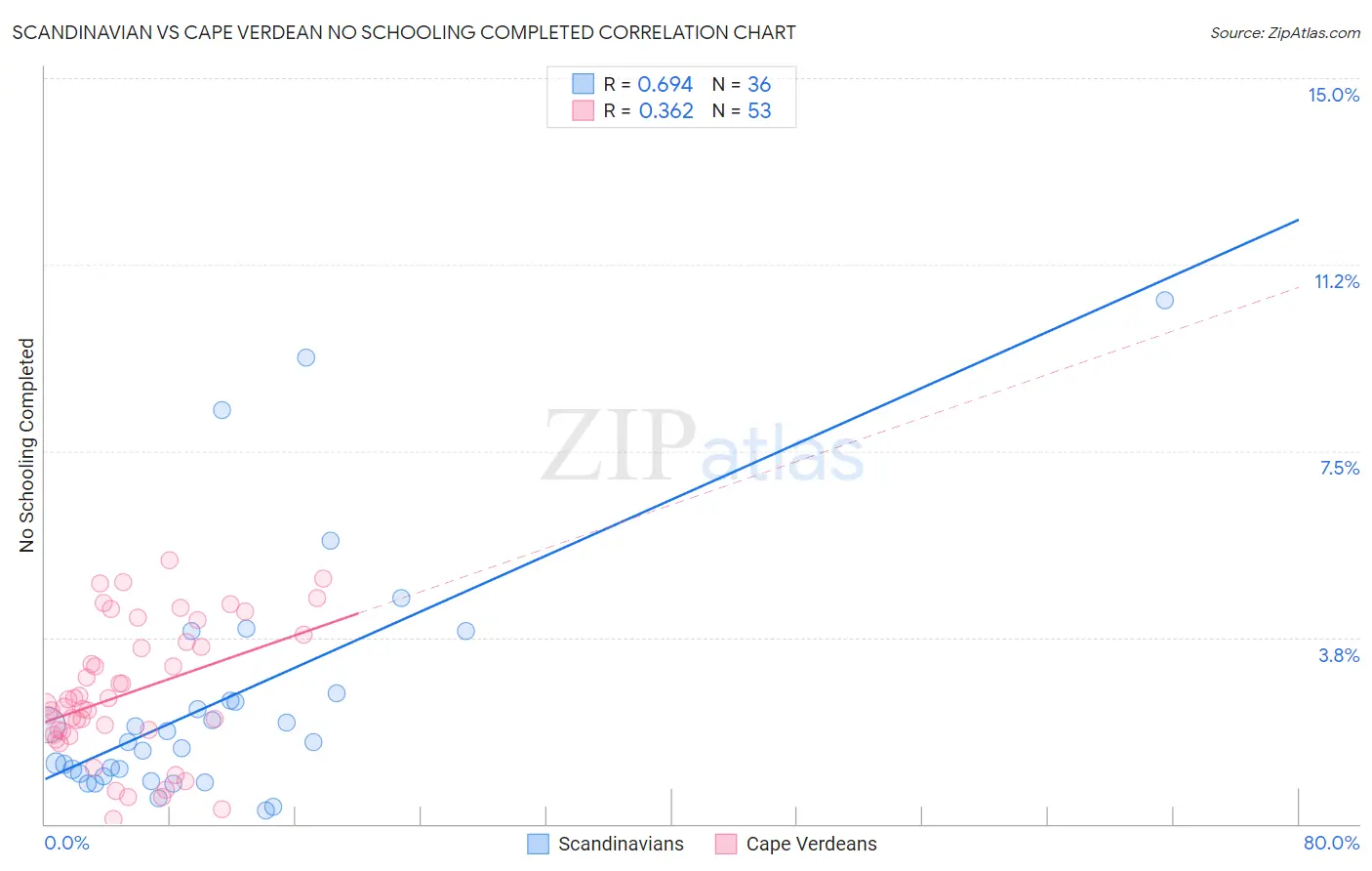 Scandinavian vs Cape Verdean No Schooling Completed Correlation Chart