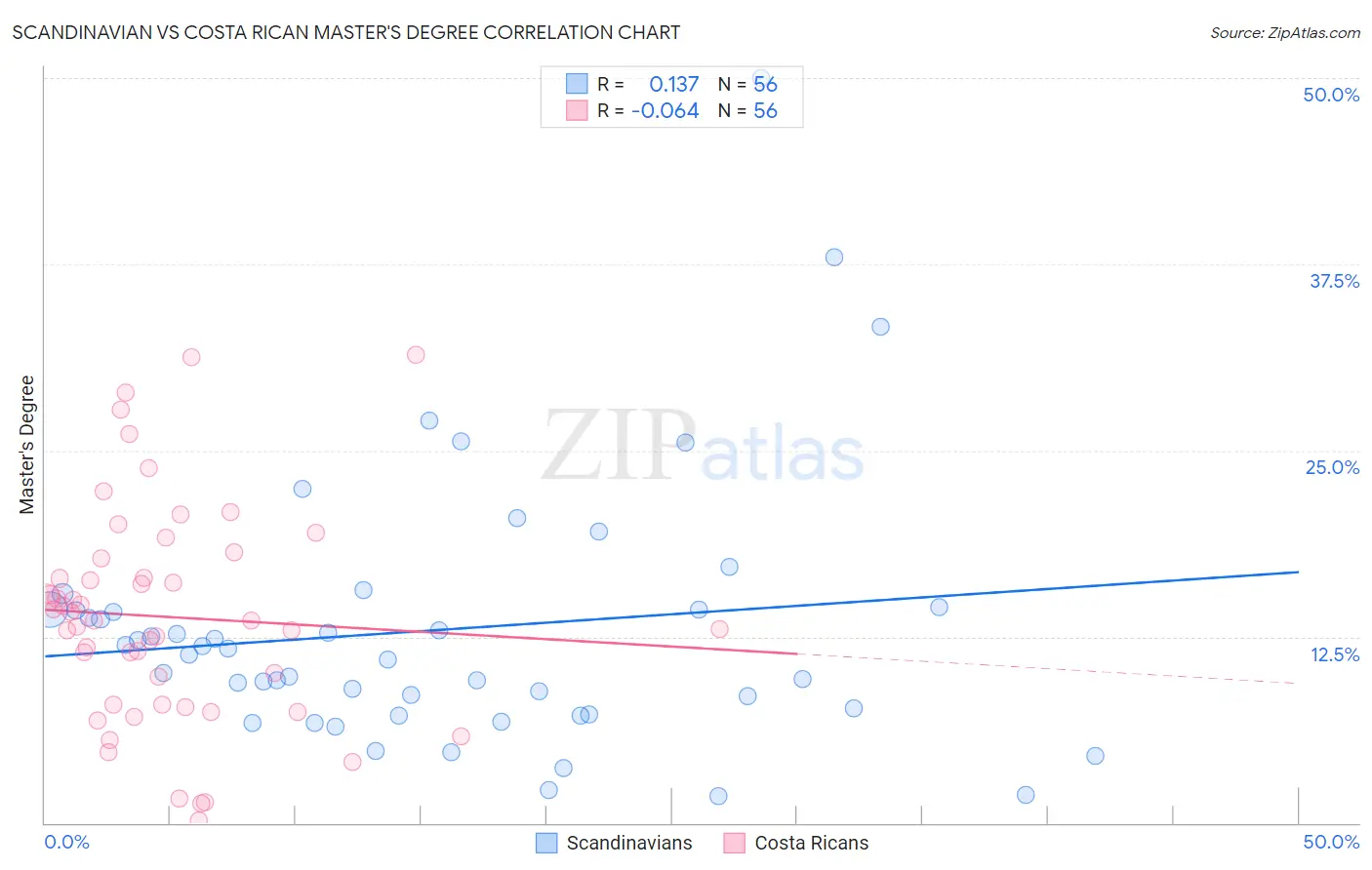Scandinavian vs Costa Rican Master's Degree Correlation Chart